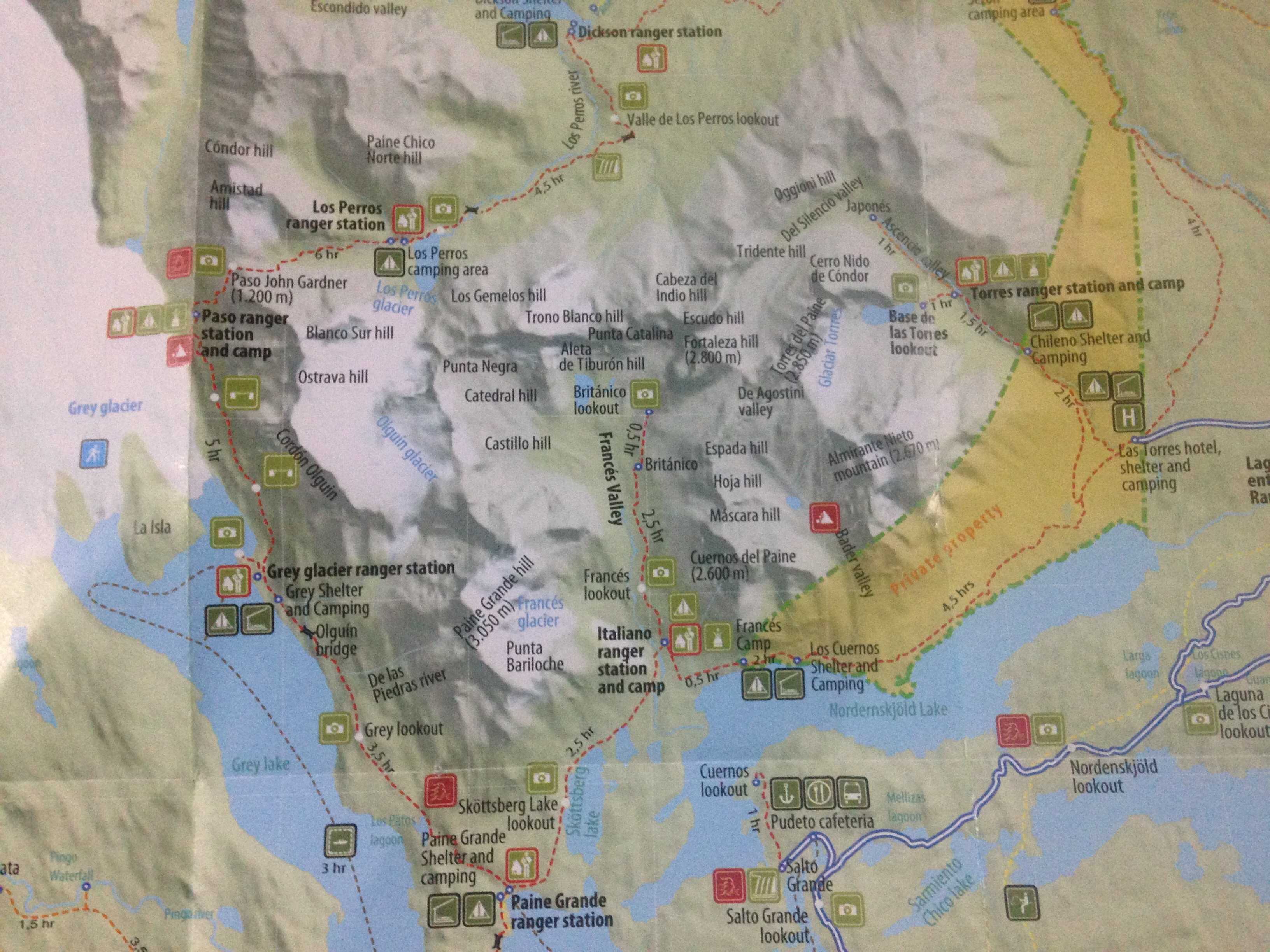 The bus ride to the check in point took three hours and after paying our park fees we were transferred to a catamaran which took us across Pehoe Lake to Camp Paine Grande, the Western entrance to the trail.