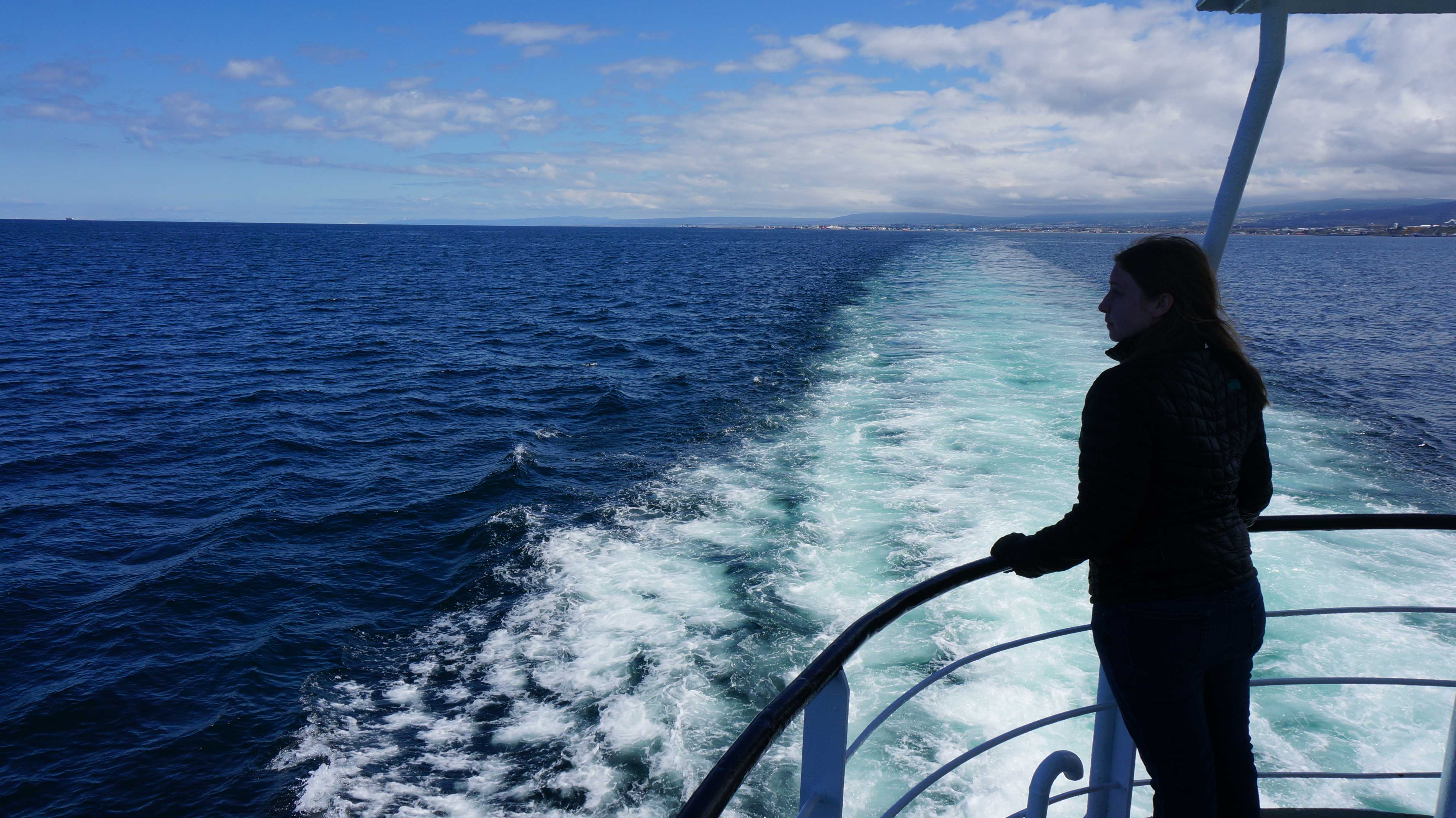 Since Steph loves getting up super early in the morning we booked a 6:30am ticket out of Ushuaia to Punta Arenas in Chile. The truth was you could only get tickets for the bus on Mondays, Wednesdays and Fridays and due to a ferry crossing partway through the trip an overnight ticket for the 10-12 hour bus ride, which would have been preferable, was not possible. We debated showing up 10 minutes after the recommended time to be at the station, but luckily we didn’t since Argentinian buses are much more prompt that the Indian transport we had become accustomed to and it left 8 minutes ahead of schedule. The border crossing went smoothly and a pod of black and white dolphins escorted us for part of our ferry crossing.